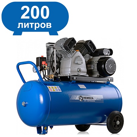 Воздушный поршневой компрессор REMEZA с ресивером 100 л, масляный, двухцилиндровый, мощностью 2,2кВт, Напряжение 220В. Производительностью 400 л/мин с коаксиальным приводом применяется в строительных, автосервисных и медицинских работах.