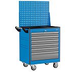 6 ящиков. Для хранения инструмента в ЕВРОЛОЖЕМЕНТАХ. Боковые панели с перфорацией (для установки аксессуаров). Цельносварная конструкция корпуса тележки. Центральный замок Euro-Lock. Шариковые направляющие полного выдвижения. Размеры (высота x ширина x глубина): 850 х 700 х 460 мм. Вес: 58,8 кг.