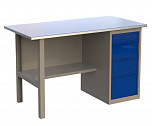 Стол бестумбовый поставляется в разобранном виде (4 места). Нагрузка на столешницу до 600 кг. Стандартный цвет: корпус - серый глянец RAL 7030, ящики и двери тумб - синий RAL 5017. Размеры: 855х1200х700мм. Вес: 40 кг.