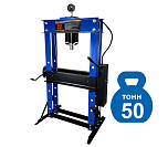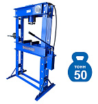 Усилие 50 тонн. Пресс гидравлический. Привод: ручной. Две скорости подачи пуансона. Первая скорость для быстрой подачи штока к рабочей поверхности, вторая (медленно) для выпрессовки. Применяется для запрессовки подшипников, деталей машин и механизмов в гаражах, автосервисах и СТО.
