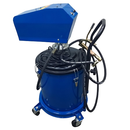 Нагнетатель предназначен для раздачи густой смазки из бочек объемом 190 л. Состоит из 2-х независимых и раздельных насосных систем, что предотвращает попадание отработанной влаги компрессора в емкость с перекачиваемым маслом. Длина шланга: 6 м. Давление смазки: 180-405 бар. Коэффициент передачи давления: 5:1. Производительность: 30 см³/с. Длина раздаточного шланга: 305 см. Вес: 15,5 кг.