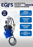 Нагнетатель пневматический, для густой смазки. Комплект оснащен тележкой для бочек 20-60 кг., пневматический насос для смазки 50:1 производительностью 800гр/мин, мембрана и крышка для солидолонагнетателя, шланг 4 м, раздаточный пистолет с наконечником. При давлении воздуха 6-8 Атм давление смазки 400 Атм максимально. Колёса: 2 прямых. Масса: 16 кг.