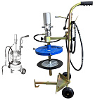 Нагнетатель предназначен для раздачи густой смазки из бочек объемом 190 л. Состоит из 2-х независимых и раздельных насосных систем, что предотвращает попадание отработанной влаги компрессора в емкость с перекачиваемым маслом. Длина шланга: 6 м. Давление смазки: 180-405 бар. Коэффициент передачи давления: 5:1. Производительность: 30 см³/с. Длина раздаточного шланга: 305 см. Вес: 15,5 кг.