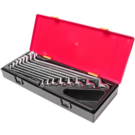 Набор ключей разрезных в прочном презентабельном боксе (10 предметов). В комплекте: ключи разрезные (Евро-тип) – 8х9, 10х12, 11х13, 14х17, 16х18, 17х19, 3/8”х7/16, 1/2”х9/16 – 8 шт. Ключи разрезные с покрытием – 10х11, 10х12 мм. – 2 шт.