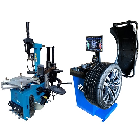 Комплект из полуавтоматического шиномонтажного стенда TS-21, для колёс 99% автопарка России. Для дисков: 11÷20”. В комплекте: пистолет для подкачки шин + монтажка + пластиковые накладки на зажимные кулачки + регулятор давления с влагоотделителем и манометром. + TS-550 Балансировочный станок (с лазером) Для дисков: 10÷24” (254-609 мм). В комплекте: кожух с автозапуском + клещи + кронциркуль + быстрозажимная гайка + набор конусов.