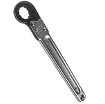 Из хром-молибденовой стали. Хромированная поверхность. Полированная головка. Особая конструкция способствует быстрой работе по обслуживанию гидравлических, пневматических и других систем автомобиля, например, линий высокого давления. Трещоточный механизм удобен для работы с резьбовыми соединениями в условиях ограниченного доступа, ключ нет необходимости снимать. Размер: 17 мм. Длина: 200 мм.