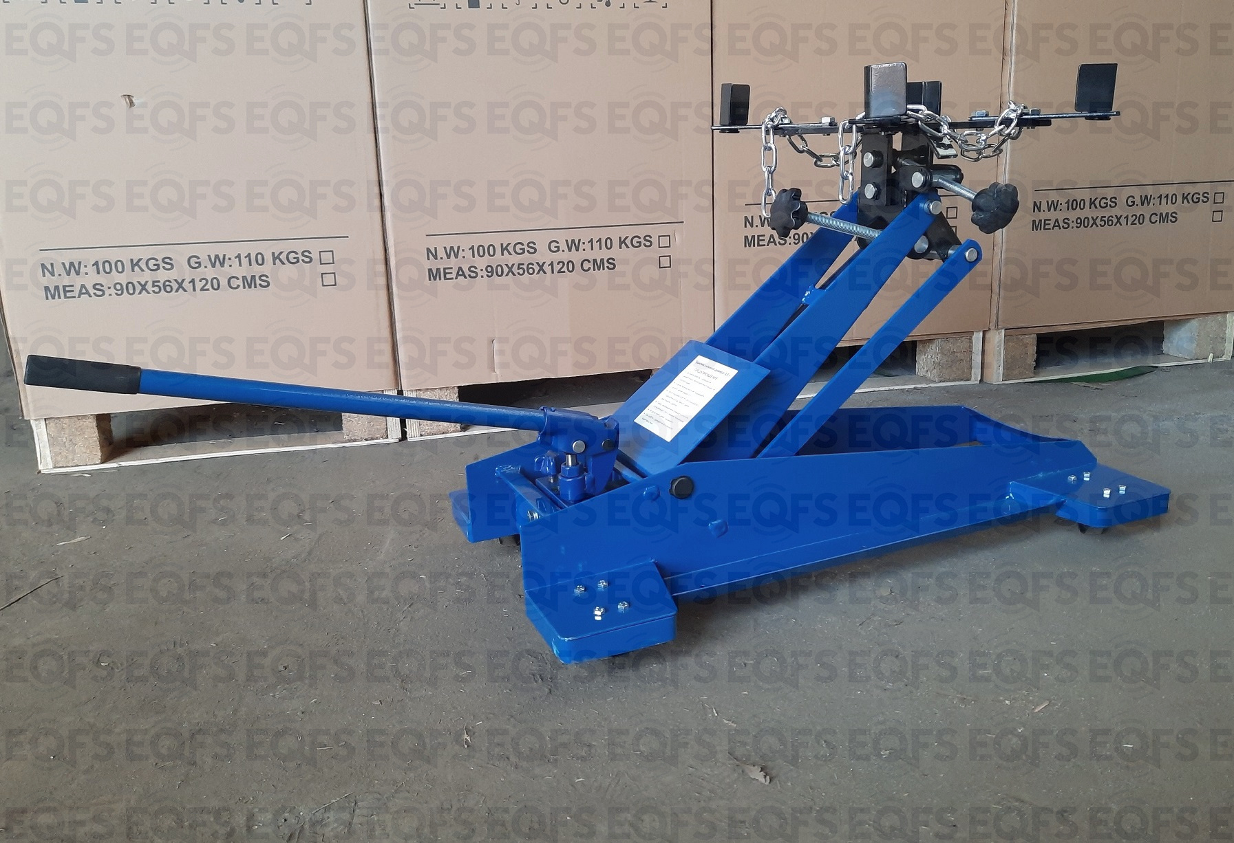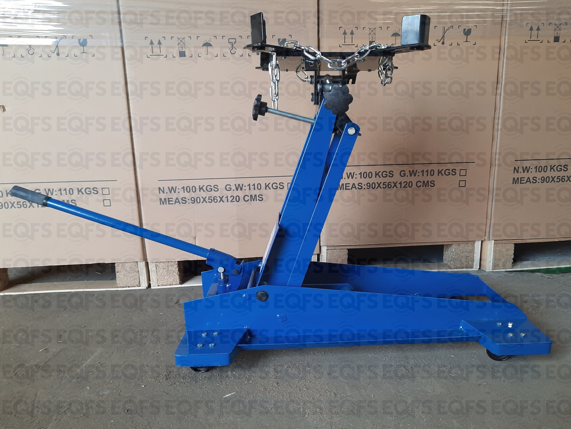 Трансмиссионная гидравлическая стойка (домкрат трансмиссионный) является мобильным подъёмным устройством. С ее помощью можно поднять и переместить снятый узел. При подъеме на требуемую высоту удобно монтировать снятый агрегат. Цвет темно-синий.