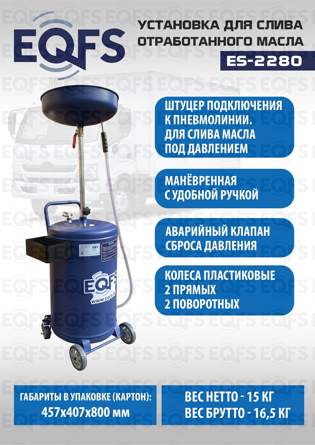 Технические особенности установки для слива масла ES-2280:
