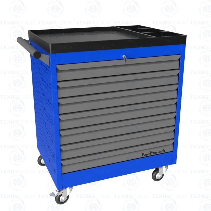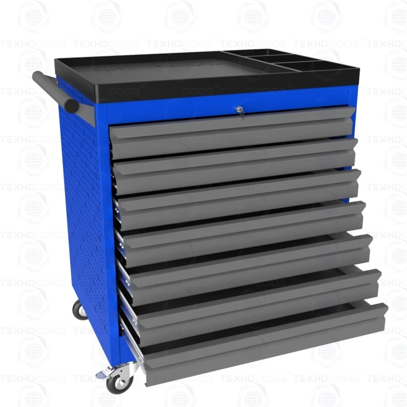 На боковые стенках тележки имеется перфорация (25х25 мм) с диаметром отверстия 8 мм. В отверстия перфорации можно устанавливать ключки и навесной инструмент.