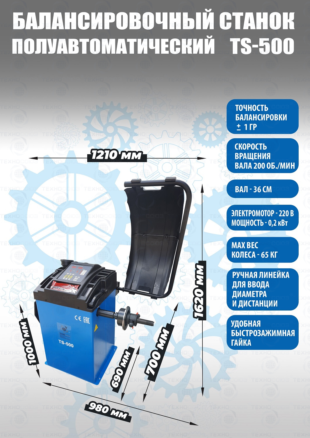 + TS-500 Балансировочный станок для колес легковых автомобилей, мотоциклов и легких грузовиков. В комплекте: кожух с автозапуском + клещи + кронциркуль + быстрозажимная гайка + набор конусов. Для балансировки колес диаметром до 760мм. Размеры диска: ширина 3–9” (76-228 мм) , диаметр колеса" - 10–21” (254-533 мм). Максимальный вес колеса с диском – 65 кг. C кожухом. Точность ±1гр. Напряжение 220В.