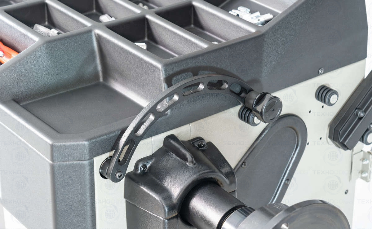 • Основная рабочая поверхность содержит 15 универсальных ячеек для хранения балансировочных грузов, конусов и других приспособлений.