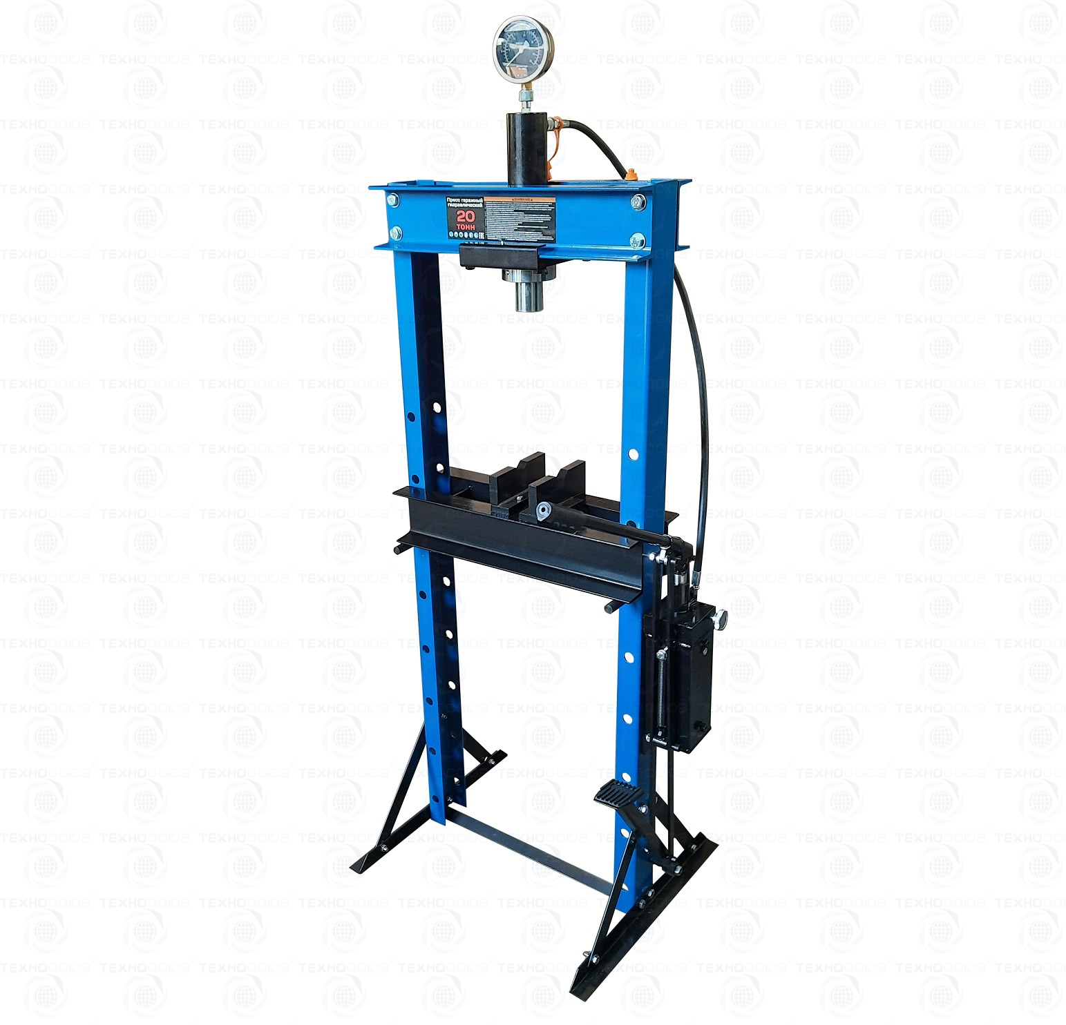 Пресс гидравлический ножной / ручной для автосервиса, усилие 20 тонн. «Свободные руки». ножной / ручной. Пуансон 0-145 мм. Рабочее окно 500х1110 мм. Доставка по РФ и ТС. Поршень приводится в действие нажатием на ручку или педаль. Рекомендуется для выпрессовки деталей машин, втулок и т.п. в автосервисе, Гараже и СТО. Гидроцилиндр с пуансоном имеет возможность перемещения по всей ширине станины. Подъёмная площадка регулируется по высоте и фиксируется в требуемом положении.